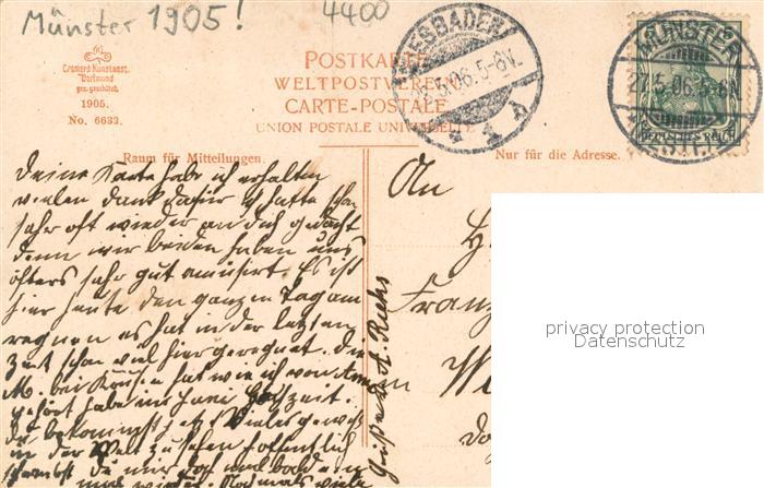 73709520 alte Postkarte Muenster Westfalen Marienplatz m. Mariensaeule und Ludgerikirche postalisch gelaufen Erhaltung siehe scans [LiesaD40] KatCode: 11110005515000