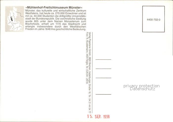 72053876 Muenster Westfalen Muehlenhof Freilichtmuseum Windmuehle postalisch nicht gelaufen Erhaltung siehe scans KatCode: 11110005515000