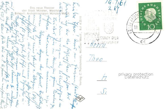 73176005 alte Postkarte Muenster Westfalen Neues Theater Architektur postalisch gelaufen Erhaltung siehe scans [FriedD77] KatCode: 11110005515000