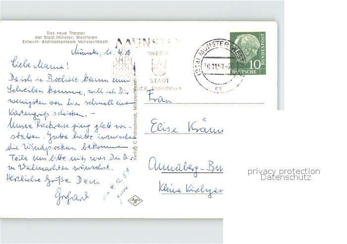 72413137 alte Postkarte Muenster Westfalen Neues Theater Nachtaufnahme postalisch gelaufen Erhaltung siehe scans KatCode: 11110005515000
