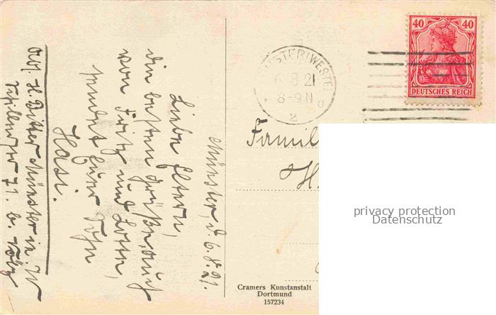 74037171 alte Postkarte MueNSTER Westfalen NRW Dom Innenansicht Blick auf Christophorus postalisch gelaufen Erhaltung siehe scans [FriedD77] KatCode: 11110005515000