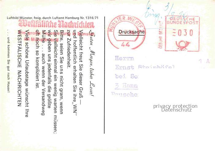 74037487 alte Postkarte MueNSTER Westfalen NRW Fliegeraufnahme postalisch gelaufen Erhaltung siehe scans [WerneD78] KatCode: 11110005515000