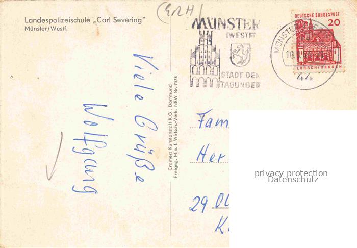 74032047 alte Postkarte MueNSTER Westfalen NRW Landespolizeischule Carl Severing postalisch gelaufen Fliegeraufnahme Erhaltung siehe scans [WerneD78] KatCode: 11110005515000
