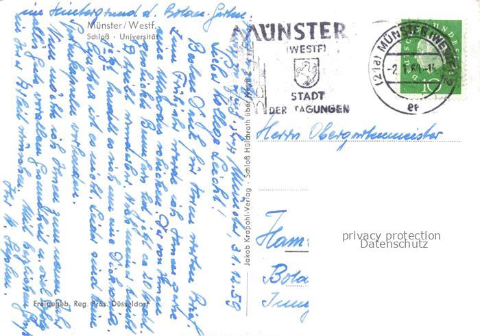 74021019 alte Postkarte MueNSTER Westfalen NRW Schloss Universitaet postalisch gelaufen Fliegeraufnahme Erhaltung siehe scans [FriedD77] KatCode: 11110005515000