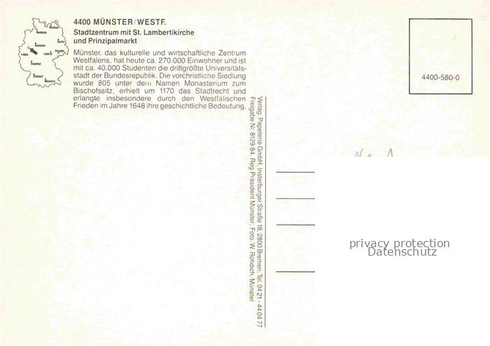 74037485 MueNSTER Westfalen NRW Stadtzentrum mit St Lambertikirche und Prinzipalmarkt Fliegeraufnahme postalisch nicht gelaufen Erhaltung siehe scans [WerneD78] KatCode: 11110005515000