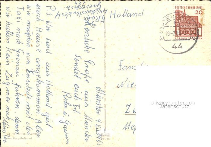 72231247 alte Postkarte Muenster Westfalen Partie am Hauptbahnhof postalisch gelaufen Erhaltung siehe scans KatCode: 11110005515000