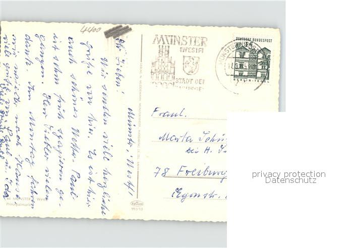 71850469 alte Postkarte Muenster Westfalen Prinzipalmarkt Kirche bei Nacht postalisch gelaufen Erhaltung siehe scans KatCode: 11110005515000
