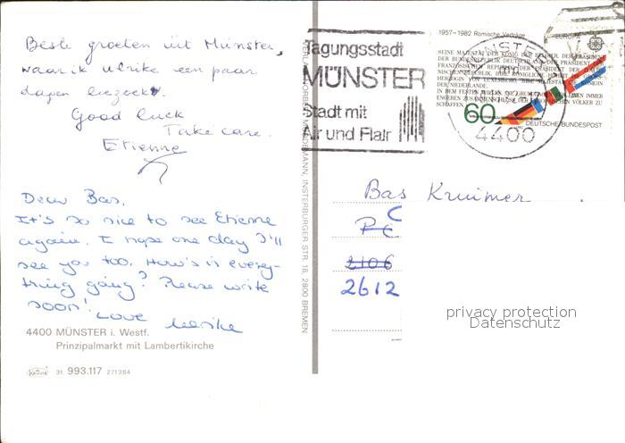 72519674 alte Postkarte Muenster Westfalen Prinzipalmarkt Lambertikirche postalisch gelaufen Erhaltung siehe scans KatCode: 11110005515000