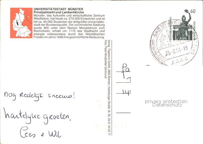 72325680 alte Postkarte Muenster Westfalen Prinzipalmarkt Lambertikirche postalisch gelaufen Erhaltung siehe scans KatCode: 11110005515000