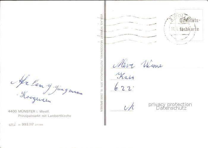 72431262 alte Postkarte Muenster Westfalen Prinzipalmarkt mit Lambertikirche postalisch gelaufen Erhaltung siehe scans KatCode: 11110005515000