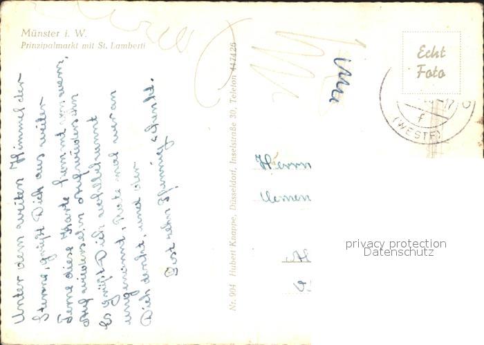 72177513 alte Postkarte Muenster Westfalen Prinzipalmarkt St Lamberti postalisch gelaufen Erhaltung siehe scans KatCode: 11110005515000