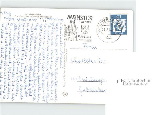 72181402 alte Postkarte Muenster Westfalen Prinzipalmarkt Stadtweinhausbogen postalisch gelaufen Erhaltung siehe scans KatCode: 11110005515000