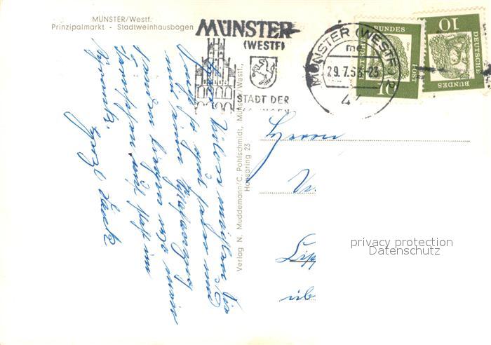 73333141 alte Postkarte Muenster Westfalen Prinzipalmarkt Stadtweinhausbogen postalisch gelaufen Erhaltung siehe scans [WerneD78] KatCode: 11110005515000