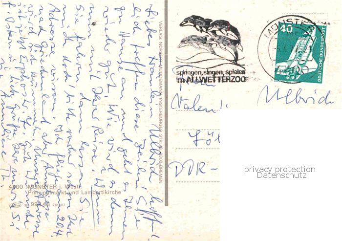 72631446 alte Postkarte Muenster Westfalen Prinzipalmarkt und Lambertikirche postalisch gelaufen Erhaltung siehe scans [LiesaD40] KatCode: 11110005515000