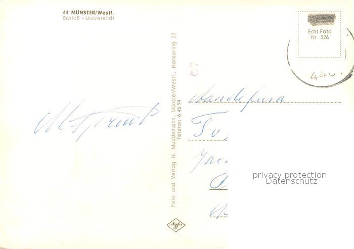 72920610 alte Postkarte Muenster Westfalen Schloss Universitaet postalisch gelaufen Erhaltung siehe scans [PaolaD17] KatCode: 11110005515000