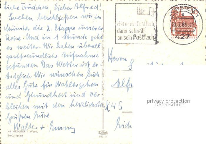 72108703 alte Postkarte Muenster Westfalen Servatiiplatz postalisch gelaufen Erhaltung siehe scans KatCode: 11110005515000