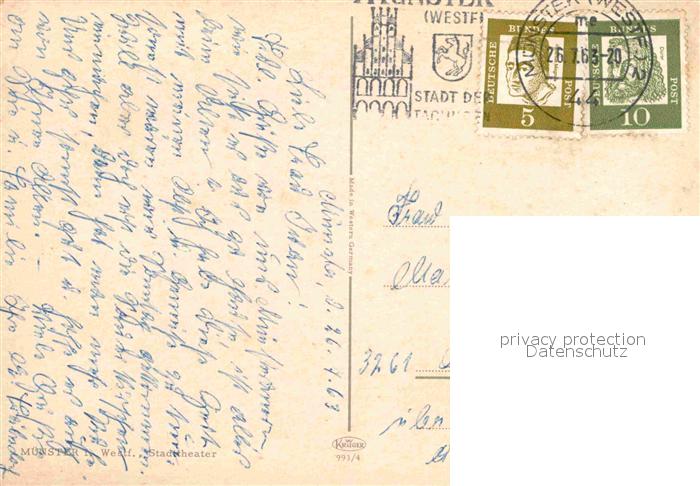 72718312 alte Postkarte Muenster Westfalen Stadttheater postalisch gelaufen Erhaltung siehe scans [LiesaD40] KatCode: 11110005515000