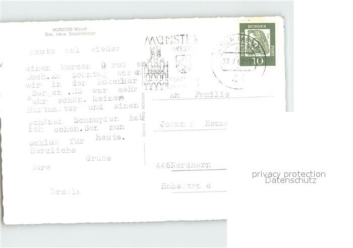 72302203 alte Postkarte Muenster Westfalen Stadttheater postalisch gelaufen Erhaltung siehe scans KatCode: 11110005515000
