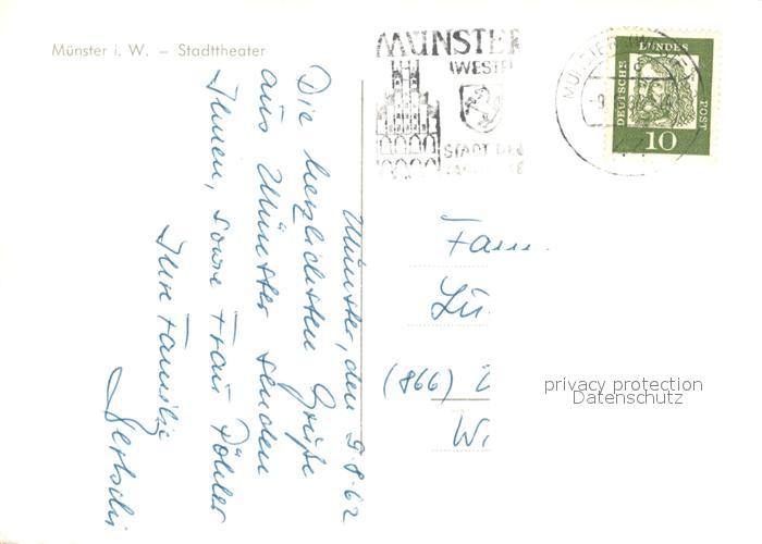 73096699 alte Postkarte Muenster Westfalen Stadttheater postalisch gelaufen Erhaltung siehe scans [LiesaD40] KatCode: 11110005515000