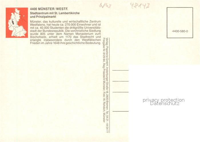 73656693 Muenster Westfalen Stadtzentrum mit St Lambertikirche und Prinzipalmarkt Fliegeraufnahme postalisch nicht gelaufen Erhaltung siehe scans [WerneD78] KatCode: 11110005515000