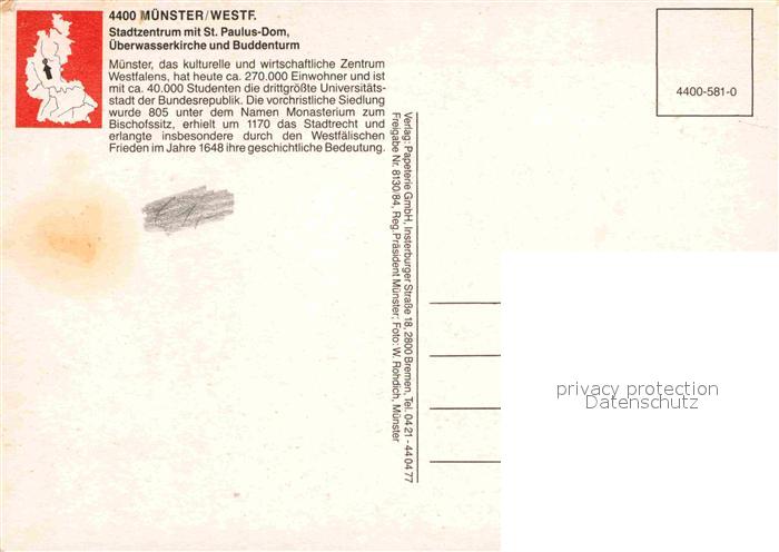 72868732 Muenster Westfalen Stadtzentrum mit St Paulus Dom ueberwasserkirche Buddenturm Fliegeraufnahme postalisch nicht gelaufen Erhaltung siehe scans [FriedD77] KatCode: 11110005515000