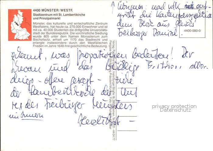 72418493 Muenster Westfalen Stadtzentrum St Lambertikirche Prinzipalmarkt Fliegeraufnahme postalisch nicht gelaufen Erhaltung siehe scans KatCode: 11110005515000