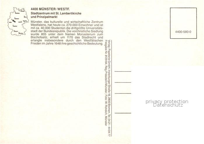 73010325 Muenster Westfalen Stadtzentrum St Lambertikirche und Prinzipalmarkt Fliegeraufnahme postalisch nicht gelaufen Erhaltung siehe scans [WerneD78] KatCode: 11110005515000