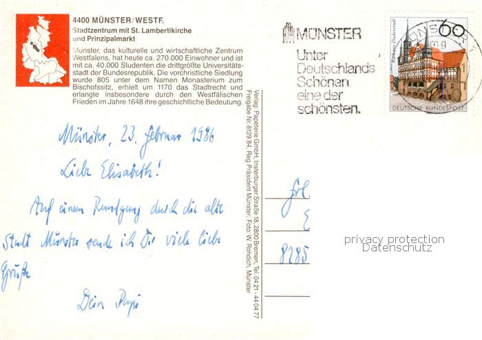 73868126 Muenster Westfalen Stadtzentrum St. Lambertikirche und Prinzipalmarkt postalisch gelaufen Fliegeraufnahme Erhaltung siehe scans [FriedD77] Fliegeraufnahme alte Postkarte Frie Katcode 11110005515000
