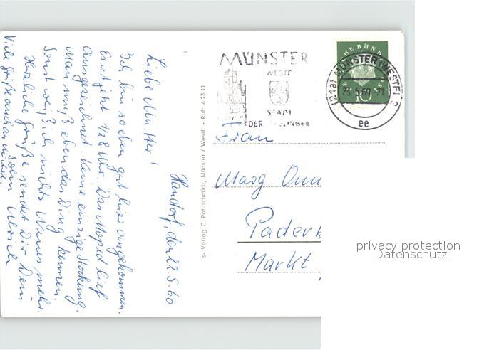 72431876 alte Postkarte Muenster Westfalen Theater Dom Rathaus postalisch gelaufen Erhaltung siehe scans KatCode: 11110005515000