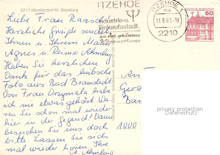 73672291 alte Postkarte Muensterdorf Kirche Teilansichten postalisch gelaufen Erhaltung siehe scans [WerneD78] KatCode: 11110001061072