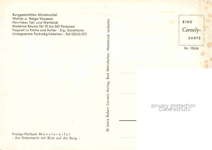 72687307 Muenstereifel Bad Entenmarkt mit Blick auf die Burg Altstadt Fachwerkhaeuser postalisch nicht gelaufen Erhaltung siehe scans [FriedD77] KatCode: 11110005366004