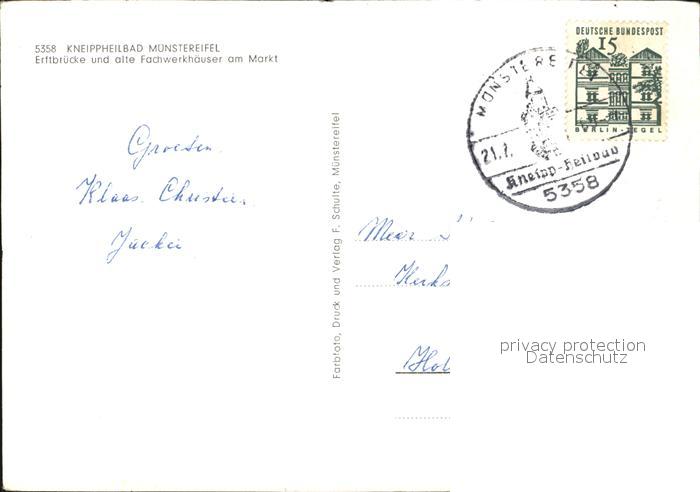 72504178 alte Postkarte Muenstereifel Bad Erftbruecke postalisch gelaufen Erhaltung siehe scans KatCode: 11110005366004