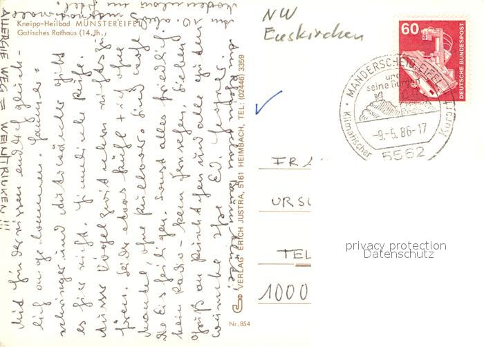 73019499 alte Postkarte Muenstereifel Bad Gotisches Rathaus postalisch gelaufen Erhaltung siehe scans [NatalD47] KatCode: 11110005366004