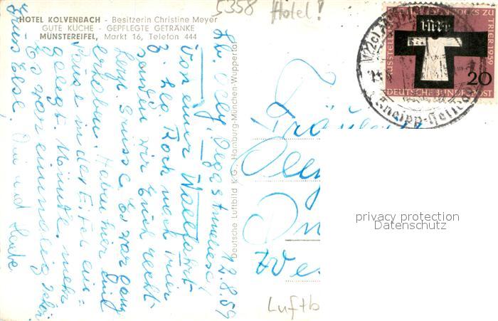 73749010 alte Postkarte Muenstereifel Bad Hotel Kolvenbach Fliegeraufnahme postalisch gelaufen Erhaltung siehe scans [WerneD78] KatCode: 11110005366004