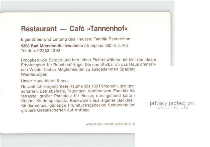 72185037 Muenstereifel Bad Restaurant Cafe Tannenhof postalisch nicht gelaufen Werbekarte (keine Postkarte) Erhaltung siehe scans KatCode: 11110005366004