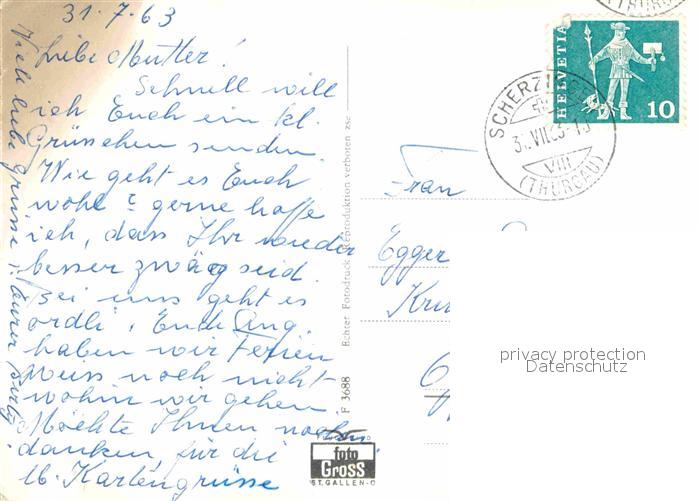 12604424 alte Postkarte Muensterlingen Bodensee Scherzingen Flugaufnahme postalisch gelaufen Erhaltung siehe scans [KathaD79] KatCode: 11470200620154