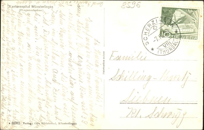 10723933 alte Postkarte Muensterlingen Fliegeraufnahme postalisch gelaufen KatCode: 11470200620154