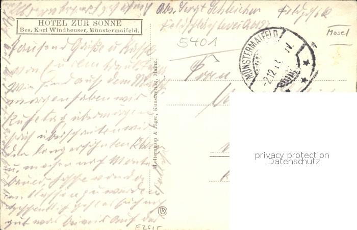 32209442 alte Postkarte Muenstermaifeld Burg Eltz Kirche Burghof postalisch gelaufen Feldpost Erhaltung siehe scans KatCode: 11110007137501