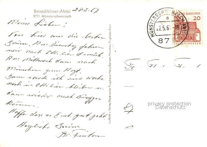 73104045 alte Postkarte Muensterschwarzach Benediktiner Abtei postalisch gelaufen Erhaltung siehe scans [KathaD81] KatCode: 11110009675165