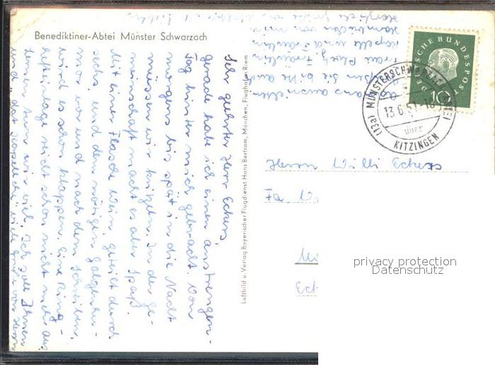 72131777 alte Postkarte Muensterschwarzach Fliegeraufnahme postalisch gelaufen Erhaltung siehe scans KatCode: 11110009675165