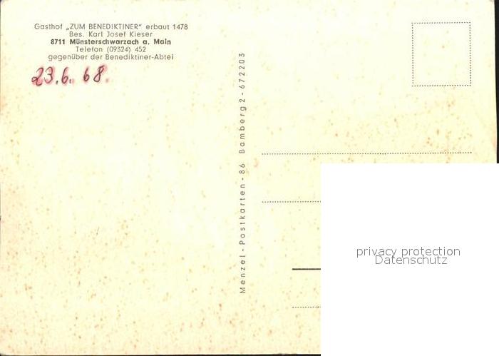 72515528 Muensterschwarzach Kirche postalisch nicht gelaufen Erhaltung siehe scans KatCode: 11110009675165
