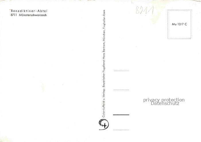 74054350 Muensterschwarzach Muenster Schwarzach Munster Schwarzach Benediktiner Abtei postalisch nicht gelaufen Fliegeraufnahme Erhaltung siehe scans [WerneD78] Fliegeraufnahme Wern Katcode 11110009675165