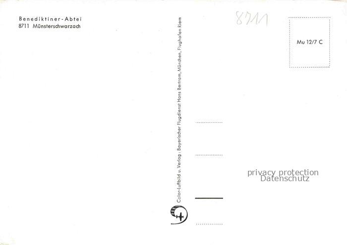 74054351 Muensterschwarzach Muenster Schwarzach Munster Schwarzach Benediktiner Abtei Fliegeraufnahme postalisch nicht gelaufen Erhaltung siehe scans [WerneD78] KatCode: 11110009675165