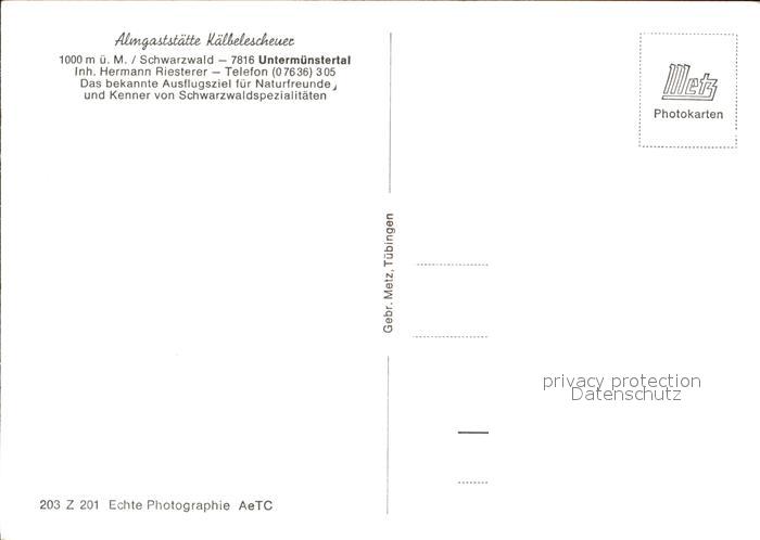 72493007 Muenstertal Schwarzwald Almgasstaette Kaelbelescheuer mit Belchen postalisch nicht gelaufen Erhaltung siehe scans KatCode: 11110008315130