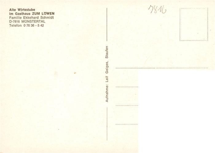 73934750 Muenstertal Schwarzwald Alte Wirtsstube im Gasthaus zum Loewen postalisch nicht gelaufen Erhaltung siehe scans [WerneD78] KatCode: 11110008315130