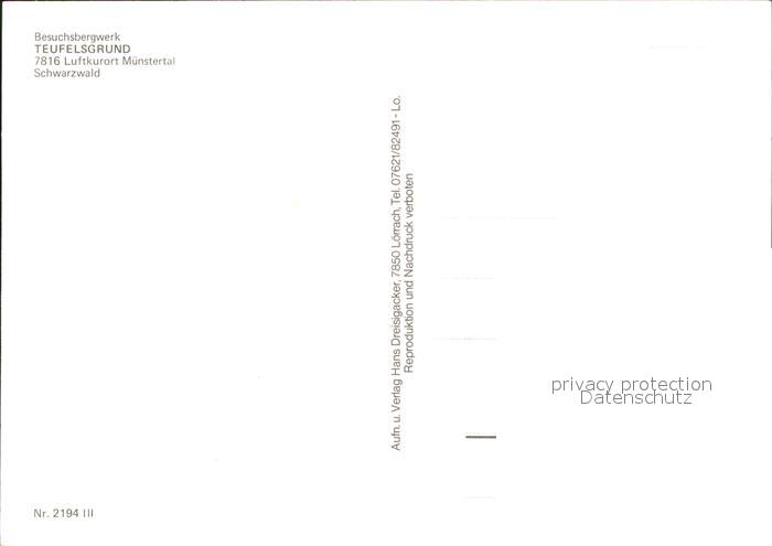 71830866 Muenstertal Schwarzwald Besuchsbergwerk Teufelsgrund Flusspat Quarz Museum Rolloch postalisch nicht gelaufen Erhaltung siehe scans KatCode: 11110008315130