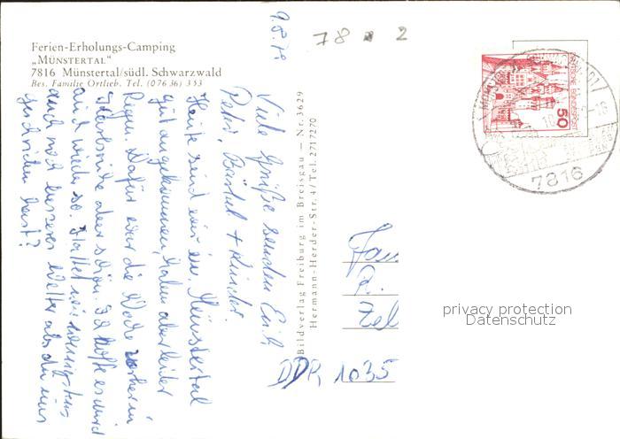 72050415 alte Postkarte Muenstertal Schwarzwald Camping Muenstertal Kinderspielplatz Reiten Minigolf postalisch gelaufen KatCode: 11110008315130