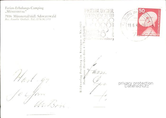 72005300 alte Postkarte Muenstertal Schwarzwald Camping Muenstertal mit Belchen postalisch gelaufen Erhaltung siehe scans KatCode: 11110008315130