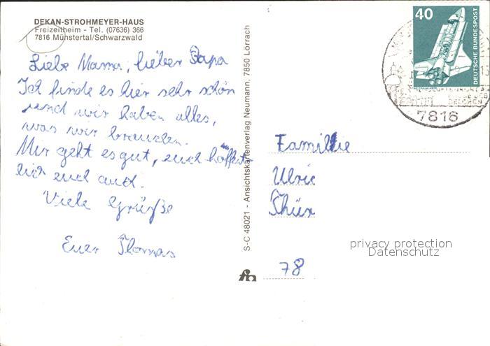 71832776 alte Postkarte Muenstertal Schwarzwald Dekan-Strohmeyer-Haus postalisch gelaufen Erhaltung siehe scans KatCode: 11110008315130