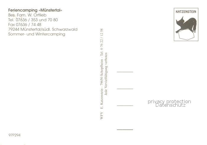 73719676 Muenstertal Schwarzwald Feriencamping Muenstertal Minigolf Tennis Hallenbad Freibad postalisch nicht gelaufen Erhaltung siehe scans [WerneD78] KatCode: 11110008315130